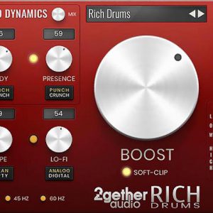 RICH Drums uses a proprietary Adaptive Band Dynamics circuit to carefully shape the loudness of your stereo drum mix.